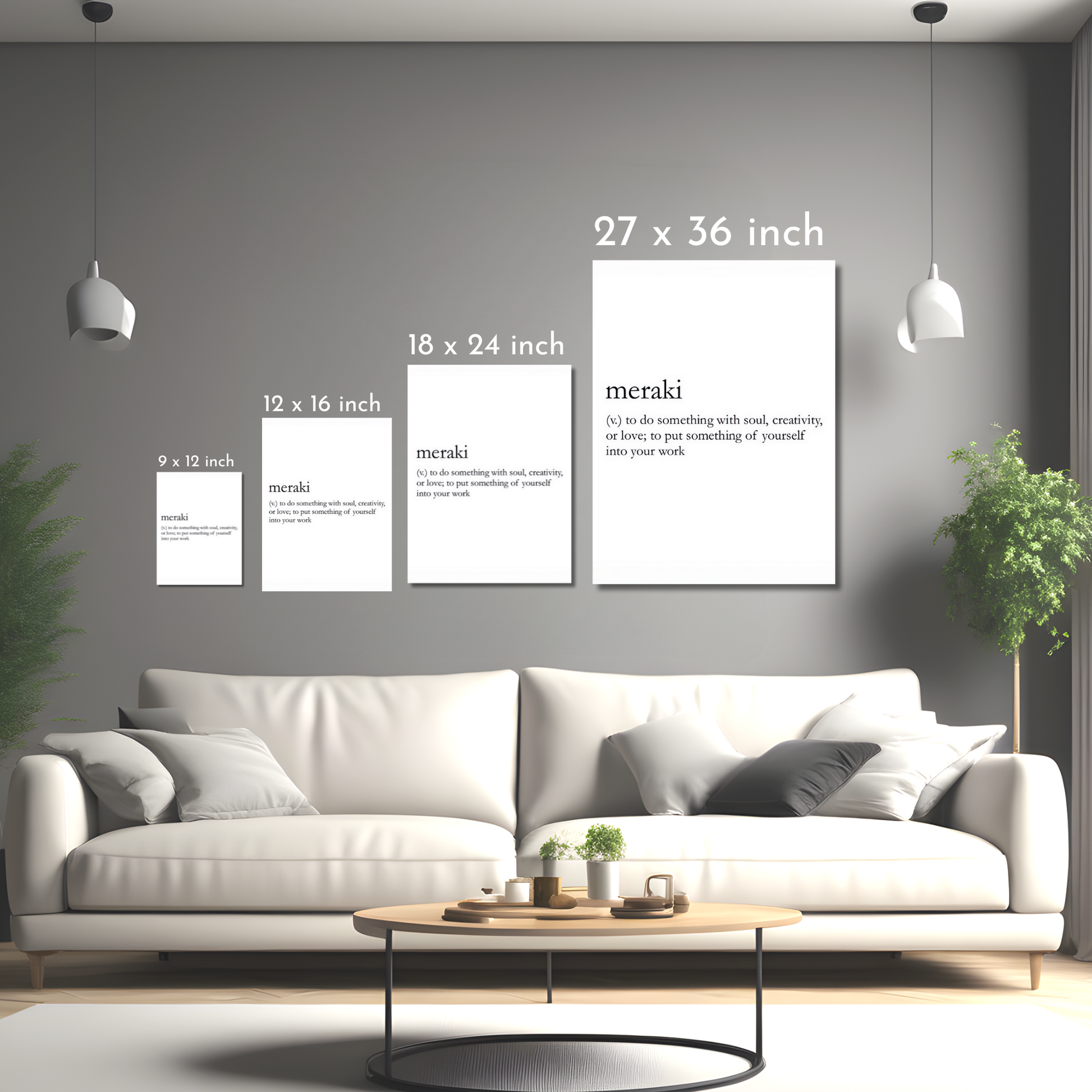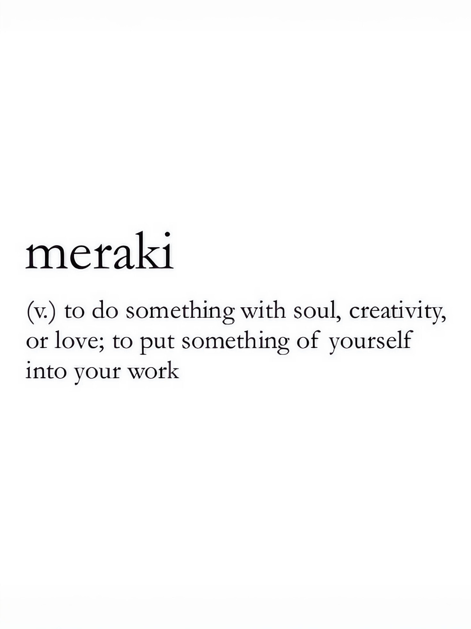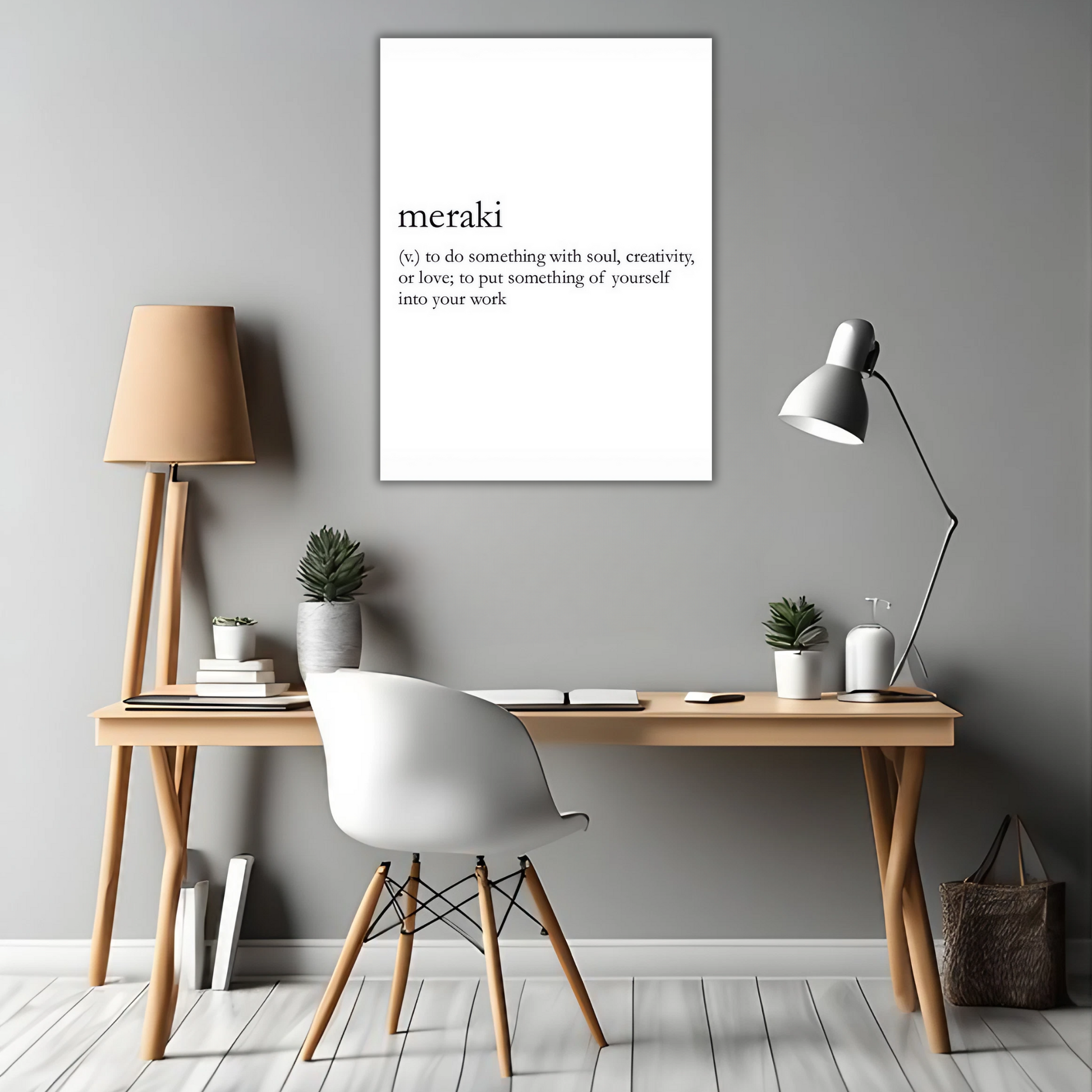 Meraki – Defined as "to do something with soul, creativity, or love; to put something of yourself into your work," this minimalist artwork captures the essence of passion and dedication. Perfect for artists, creators, and dreamers, this piece is a beautiful reminder to infuse personal energy and love into everything you do.