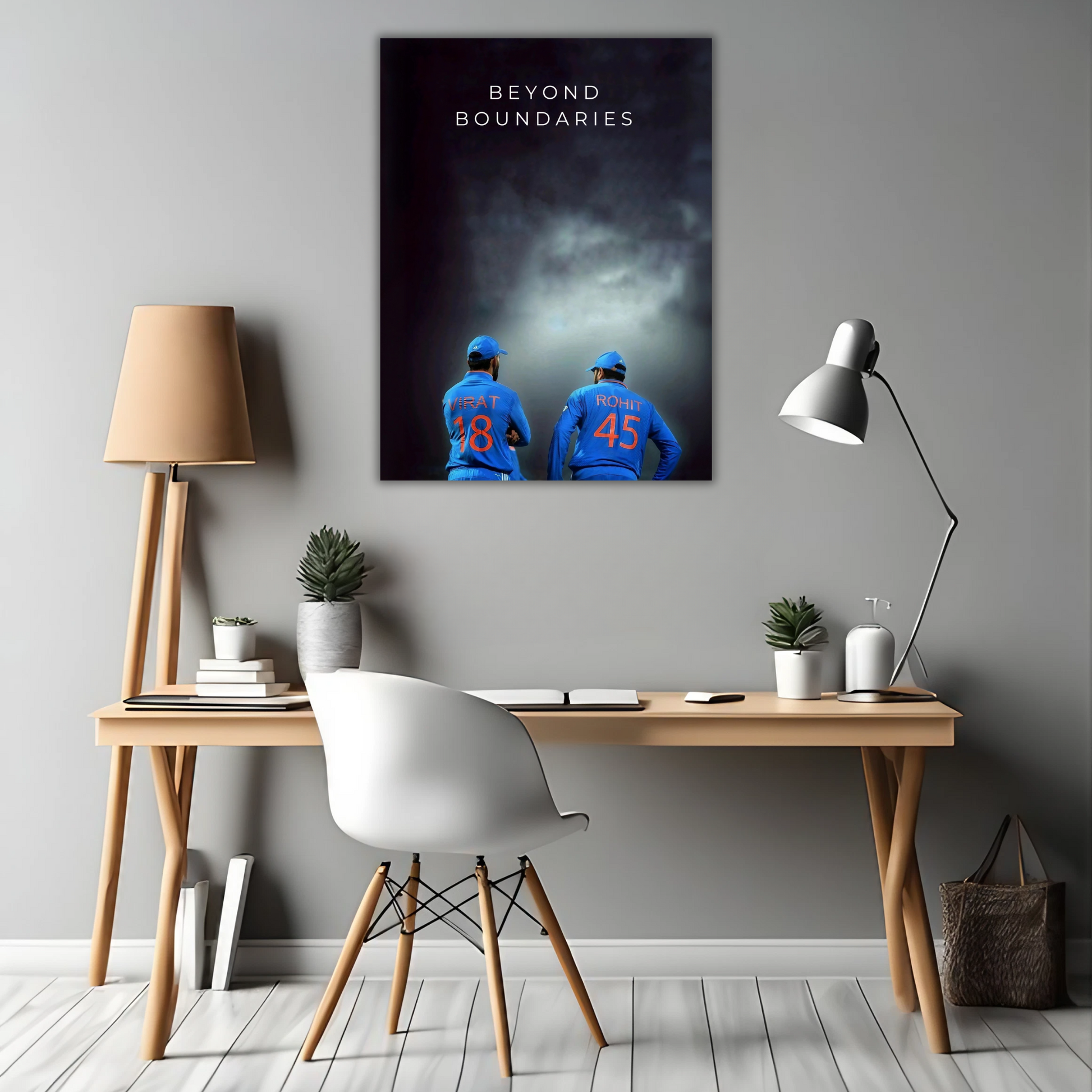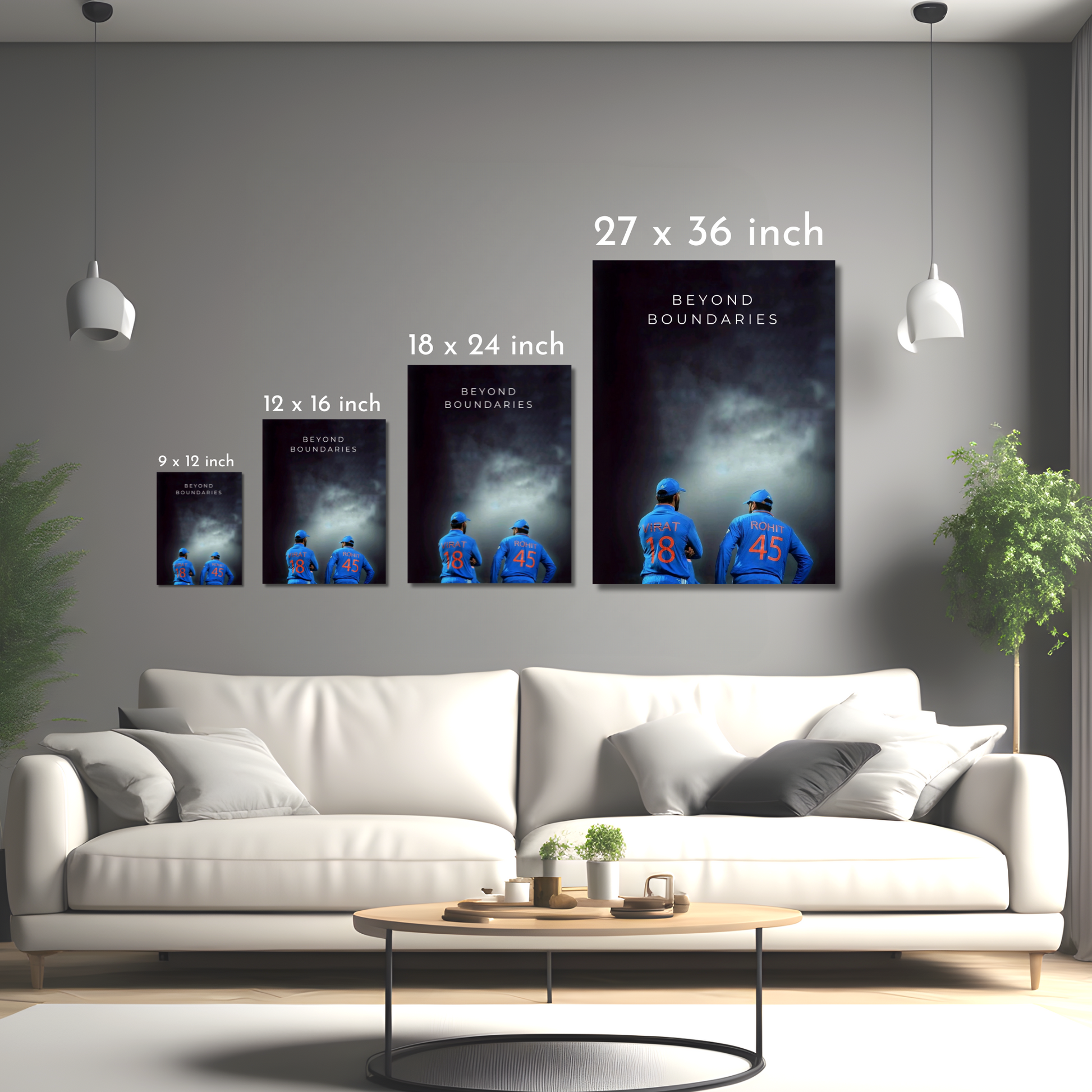 Celebrate the legacy of Indian cricket with this iconic shot of Virat Kohli and Rohit Sharma, standing together in victory. Capturing the essence of their unbreakable bond and team spirit, this artwork takes you back to their famous World Cup triumph. Perfect for any cricket enthusiast looking to bring a piece of sports history and patriotic pride into their space.