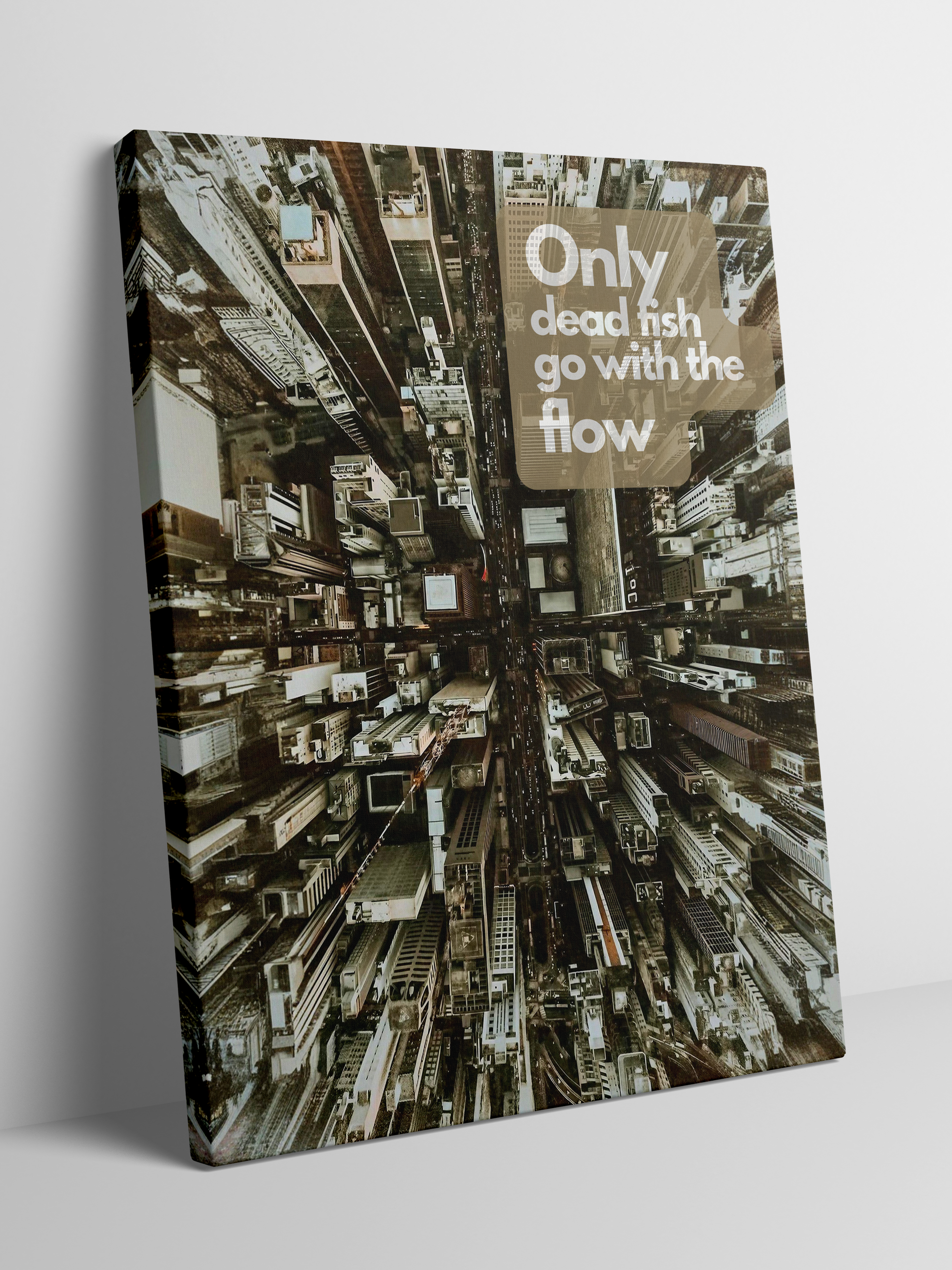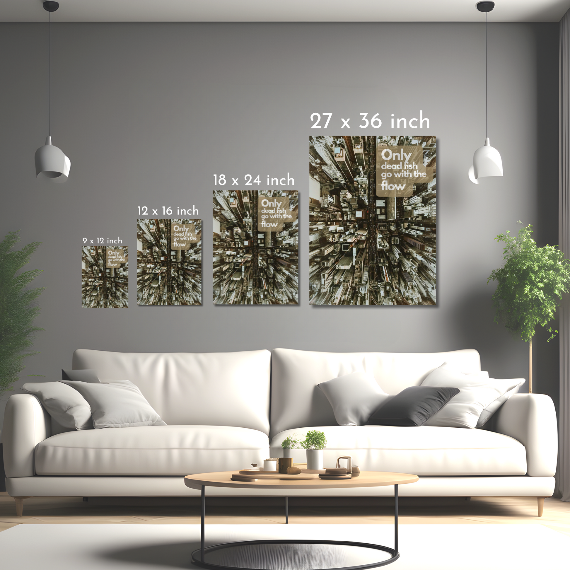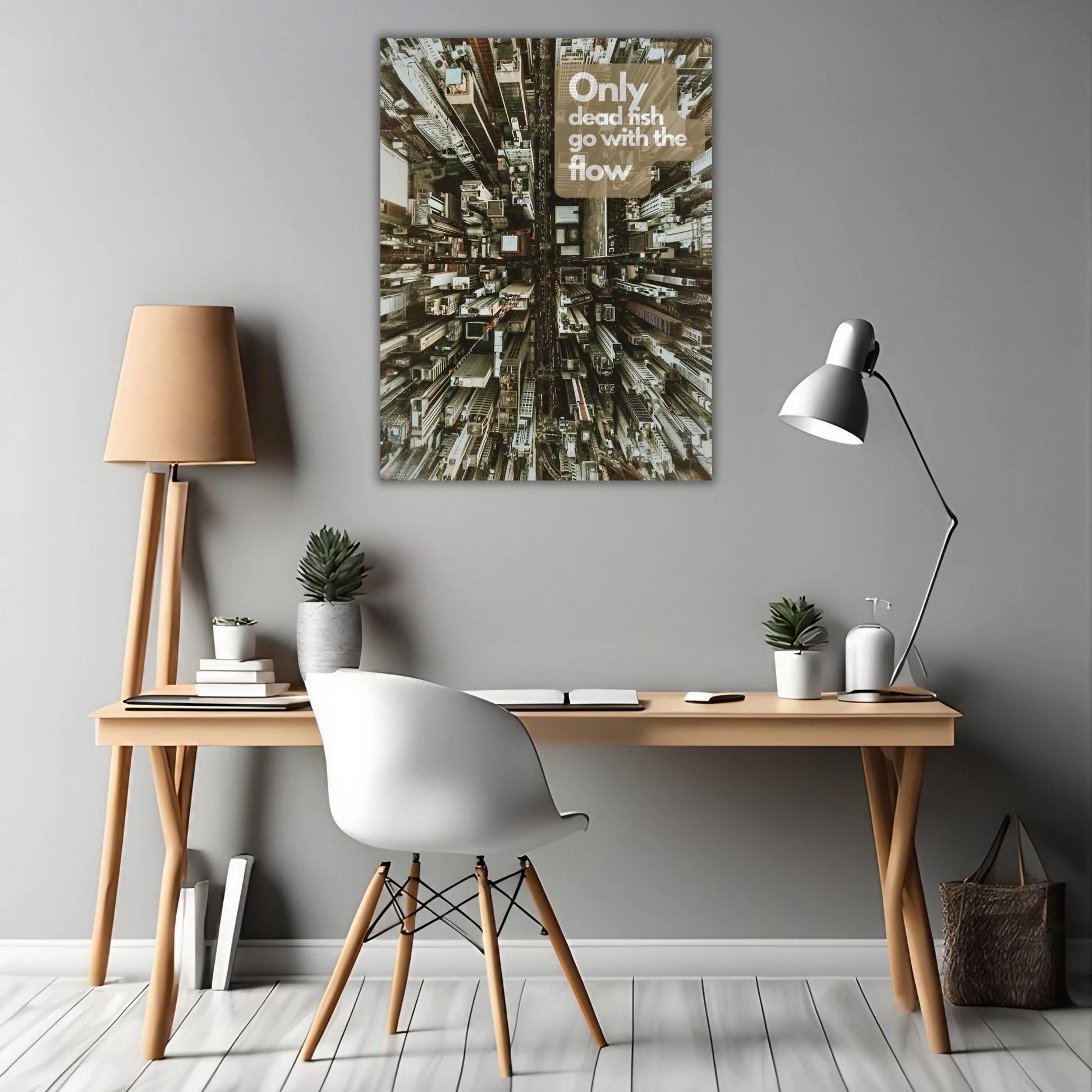 Stand out in a world that often pushes conformity. This unique perspective of an urban landscape reminds us that only the bold swim against the tide. Perfect for those who choose to go against the flow and embrace individuality.